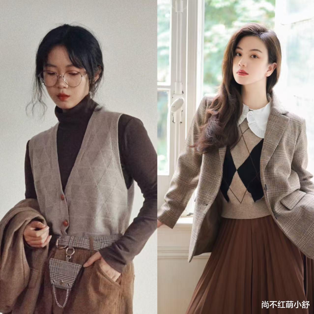 不得不说,在2025秋冬流行V领+纯色、费尔岛提花、菱形格等马甲,既能当内搭又能单穿,简直是的衣柜变形金刚。