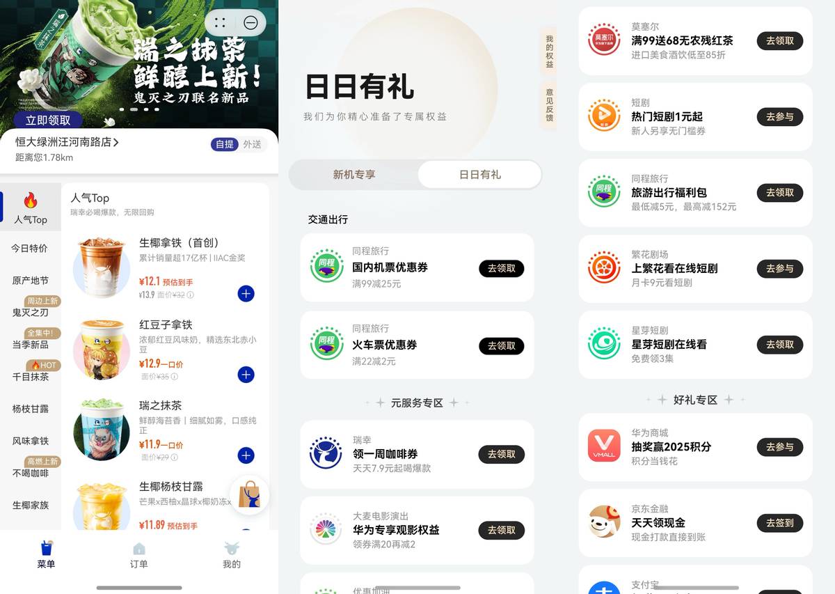 美好的周末先从一杯咖啡开始~在八宫格服务区找到瑞幸咖啡元服务,果断点了我一直以来的“心头爱”——无糖冰美式,现在的我真的很需要它来帮我“成功开机”。等外卖的时间,必须打开星芽短剧元服务看我的土味短剧,正好看到鸿蒙有礼的日日有礼活动可以免费领取三集短剧,这好事也是轮到我了~我一个反手直接点进鸿蒙有礼领了权益,迫不及待跳转星芽短剧看起了我的霸总短剧,甜得我在床上扭成麻花。