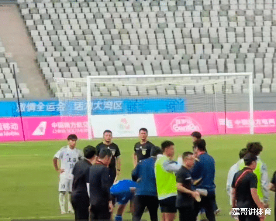 当时的场上情况是,上海队球门球快发,遭遇到了山东队的抢断,就在山东队直接面对上海队的球门时,主裁判李海新的哨子响起,他认定上海队重新发球,假如上海队的这个快发球山东队没有完成抢断,不知道李海新海会不会吹哨让上海队重新发球,等山东队完成抢断,直接要直面上海队的球门时,李海新的哨子似乎明显的偏袒和保护了上海队的球门。