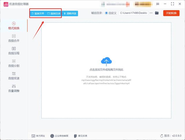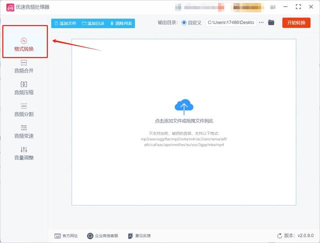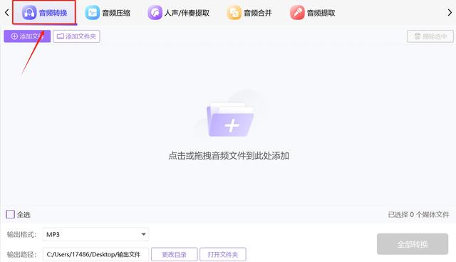 进入音频转换页面后,可以看到音频文件上传和转换的相关选项。