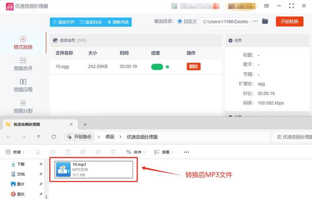 方法一:使用“优速音频处理器”将ogg音频转为MP3