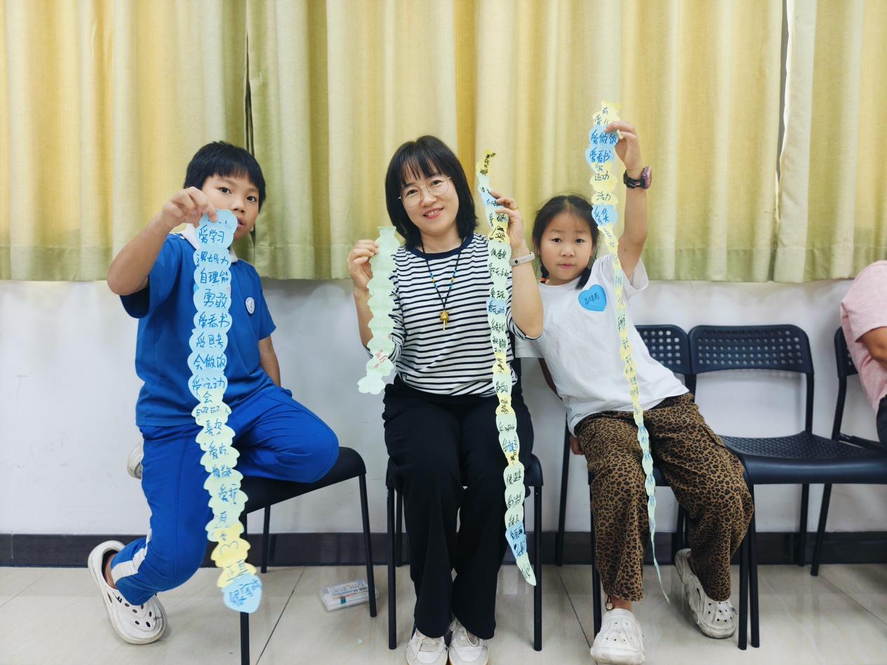 为让参与者体验如何运用游戏力打破亲子沟通隔阂,罗老师和社区工作人员通过“亲子能量充电站”,组织亲子携手完成“天下第一关”“情绪版石头剪刀布”等互动游戏。在罗老师激情带领下,亲子们全情投入,现场气氛热烈,欢声笑语不断,温馨画面频现。孩子们笑容灿烂,家长们仿佛回到童年,与孩子尽情嬉戏,亲子间的默契与信任在游戏中不断增进。这些游戏帮助亲子识别管理情绪,避免冲突,让爱意在游戏中流淌。活动最后,社工引导家长定制家庭“游戏力行动计划”,并推荐《游戏力》《亲子打闹艺术》等书目,助力家庭将游戏力融入生活。