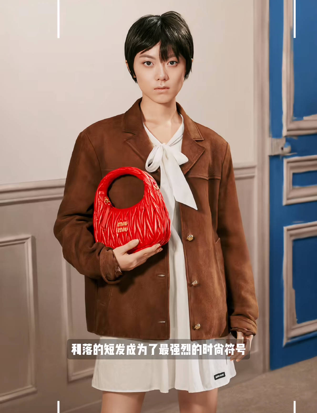 值得一提的是,赵今麦的超短发造型,与Miu Miu品牌的复古少女、叛逆个性的双重调性吻合。