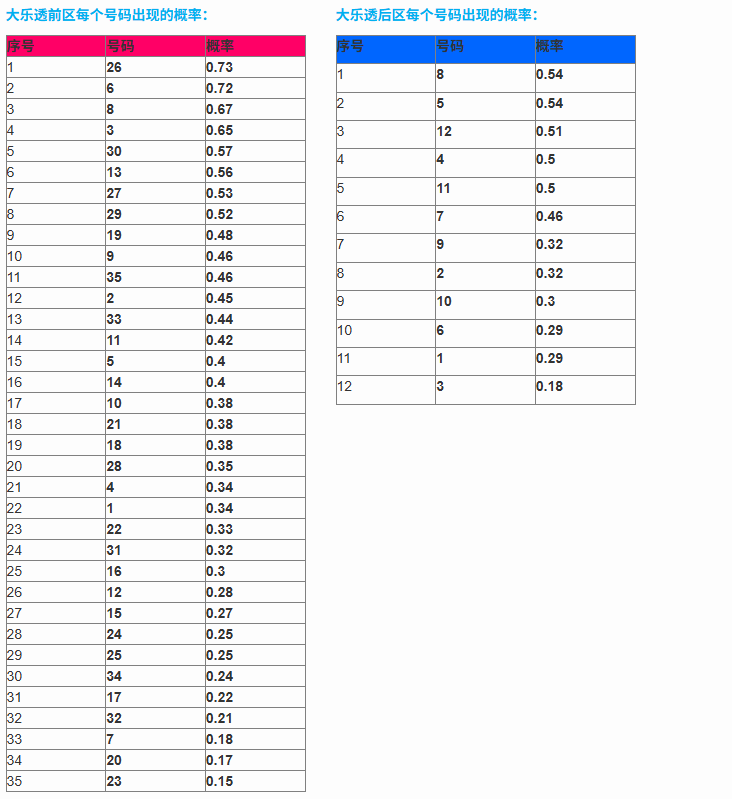 概率数据如下: