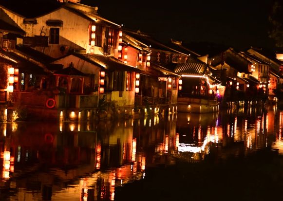当夜幕降临,古镇的每一盏灯笼都亮了起来,将整个古镇装点得如诗如画。石板路、古桥、民居都被灯光映照得如梦如幻,仿佛置身于一个古老而梦幻世界。