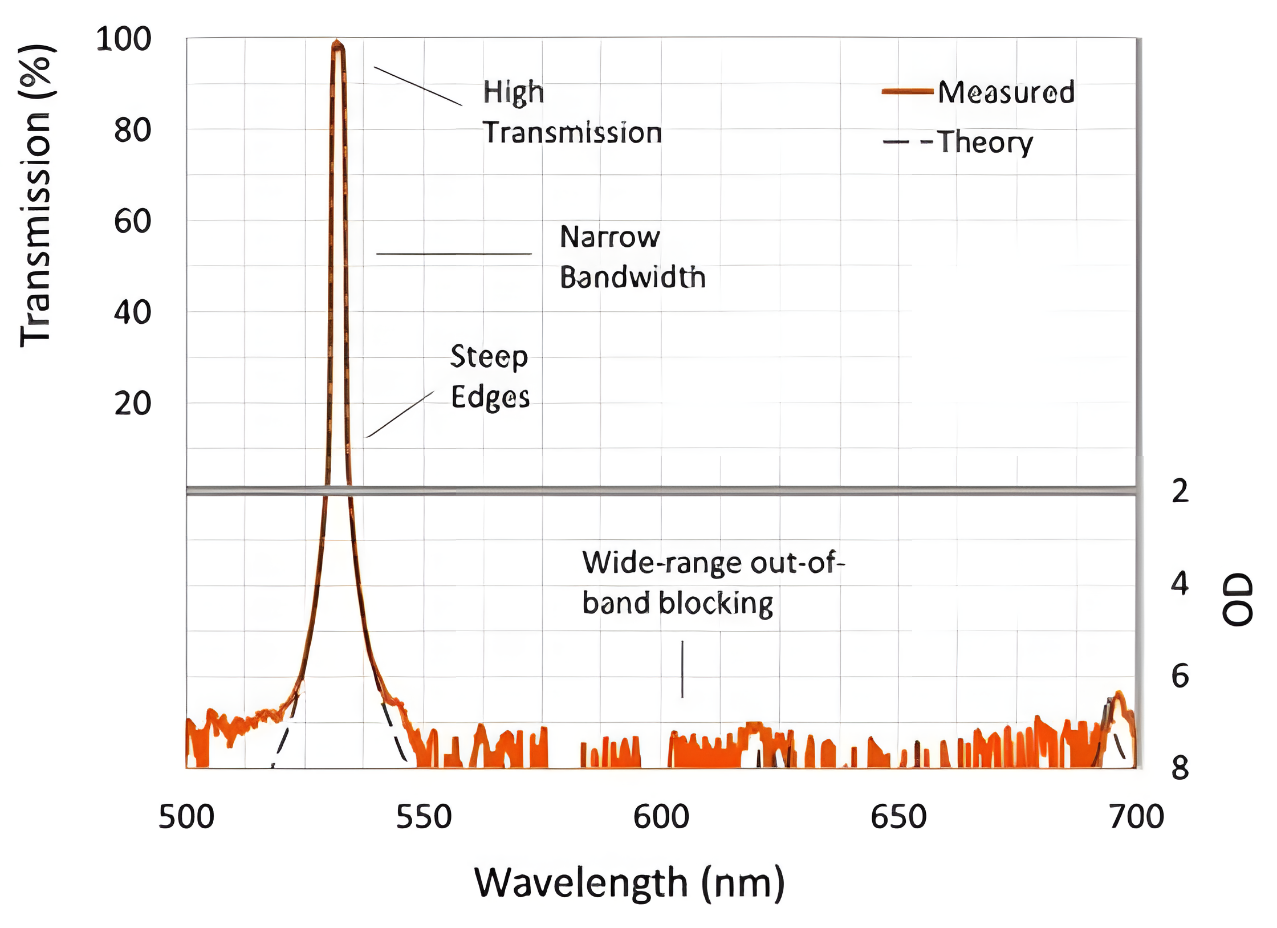1. 极窄带宽与高透过率