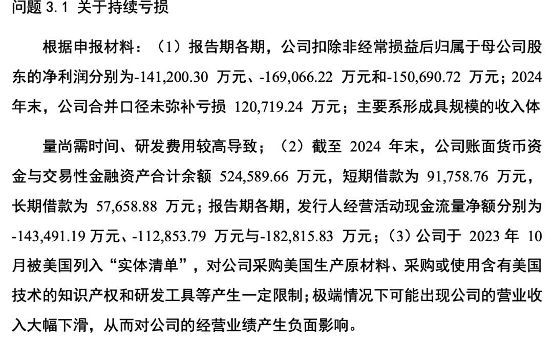 在《摩尔线程首次公开发行股票并在科创板上市申请文件的审核问询函的回复》中,提到了尚未盈利的问题。2024 年末,公司合并口径未弥补亏损12亿元。