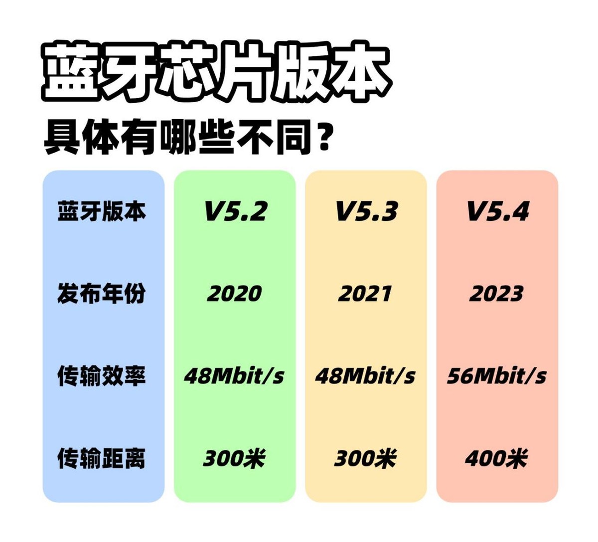 耳机支持的蓝牙连接技术,是影响使用体验的关键要素之一。在市面上,蓝牙常见的版本有5.0,还有在其基础上更新的5.1、5.2、5.3等芯片版本,而当下最新的版本为5.4版本。蓝牙版本越高,其连接信号就越强,传输速度也更快、更稳定,并且功耗也会更低。