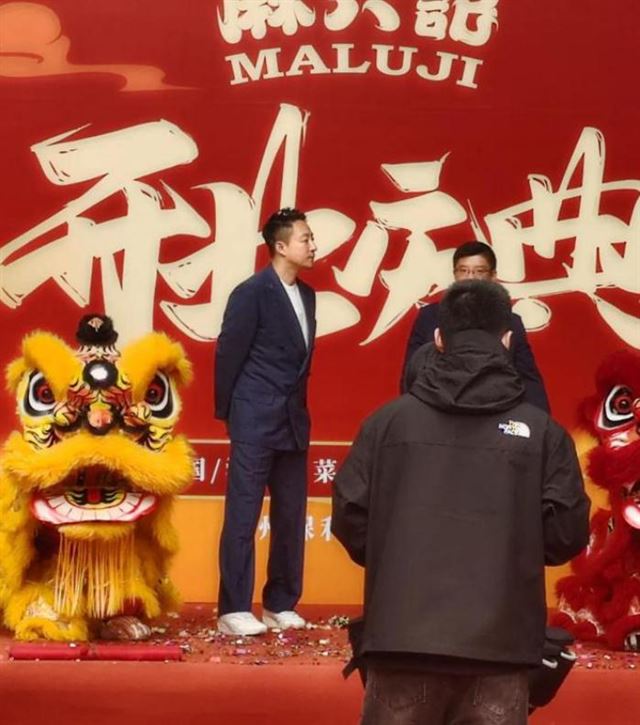 作为老板的他,一身帅气西装亮相,依旧是全场的焦点。