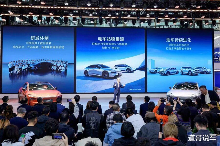 它怎么敢?今年广州车展,广汽丰田最大的动作是在24小时内完成“双车发布会”,全新换代威兰达以丰田首台“域控”燃油SUV的身份上市,铂智7则以“丰田鸿蒙座舱豪华旗舰D级纯电轿车”亮相广州车展。而广汽丰田重回百万产销的底气也来源于此,或者更准确来说是两款车背后代表的“油电同强”战略以及丰田对参与市场竞争的新理解。