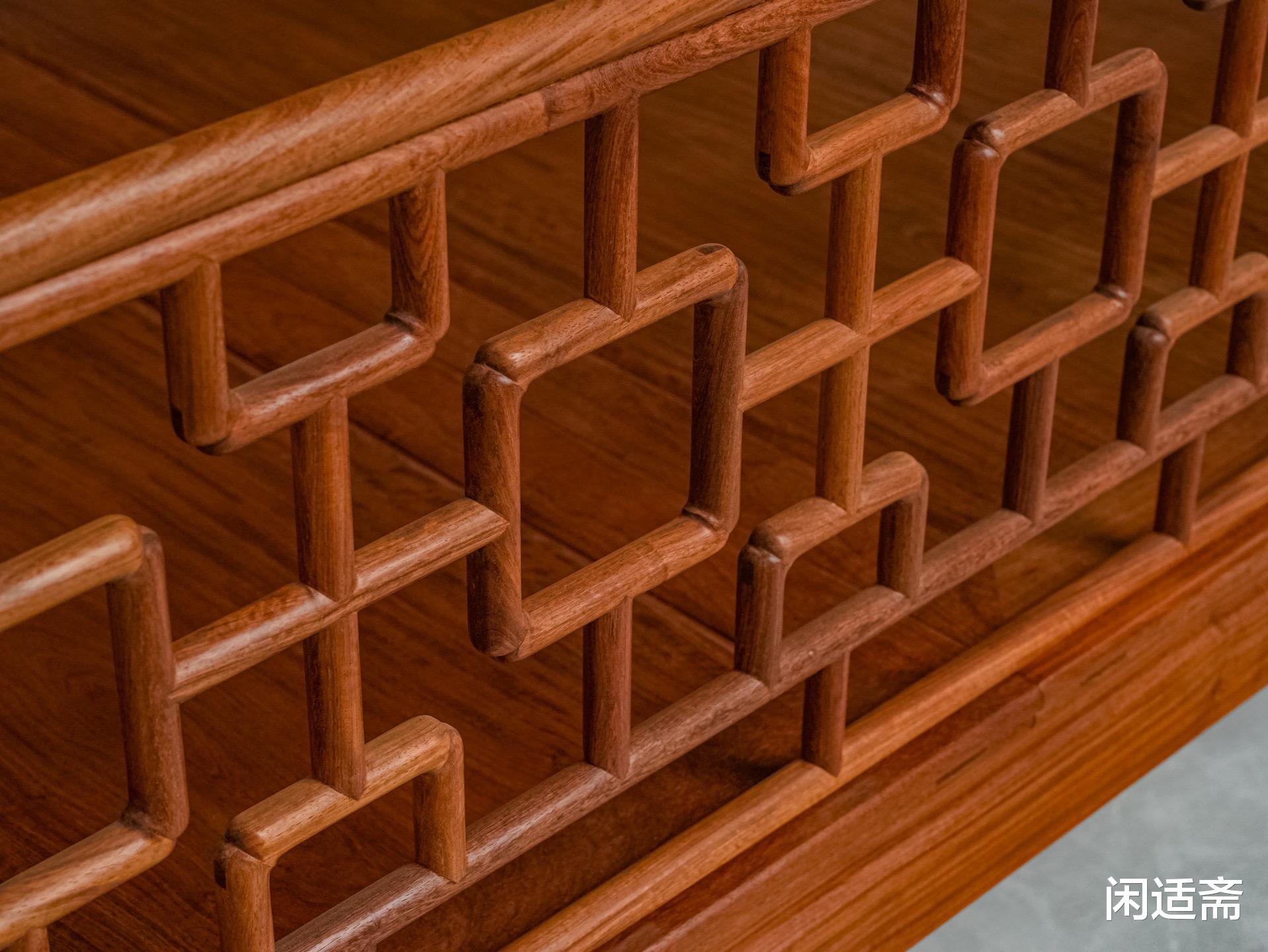 整体造型雅致大气,线条利落流畅,通透空灵的攒接结构与温润的缅花材质相得益彰,无多余繁复雕饰,简约中藏着精致,既契合中式古典家居的雅致格调,也能适配现代中式、新中式等多元家居风格,更能彰显主人的高雅品味与对中式文化的热爱,藏用皆宜,温润传家。