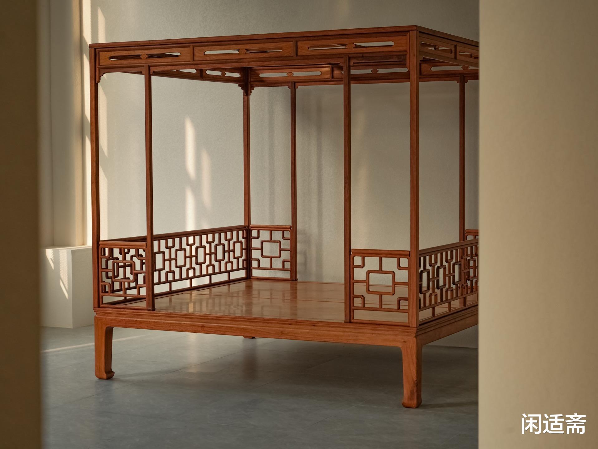 架子床,是中式卧具体系中最具文化内涵与生活哲思的经典形制,承载着数千年的人居智慧与东方美学。它以 “床” 为体,以 “架” 为骨,四足立地、床顶设架,四周装有围栏,既为休憩营造出私密安谧的空间层次,又通过精巧的结构设计,契合古人 “安身、养心、守序” 的生活理念。作为传统民居的核心家具,架子床不仅是安睡之所,更蕴含着对居家秩序、伦理规范与吉祥寓意的极致追求,是中式卧室文化的具象浓缩。