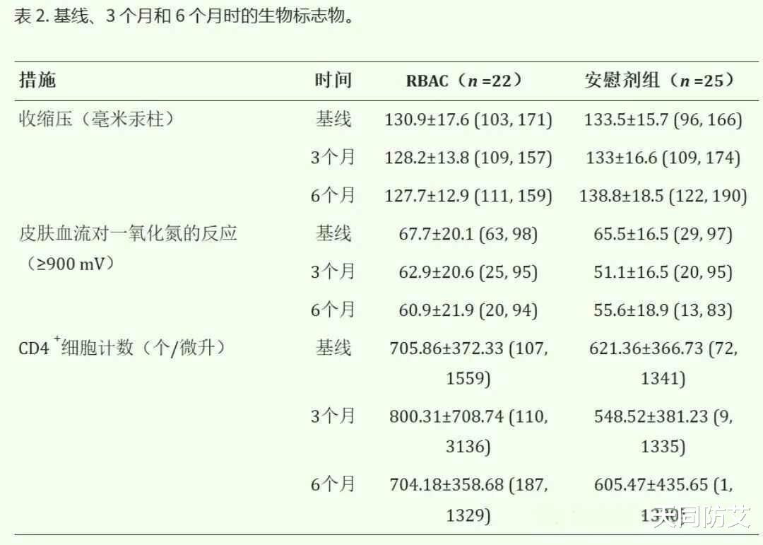 在 6 个月的随访中,安慰剂组 (+2.2%) 和 大和米蕈组 (+3.1%) 的 CD4+ 百分比变化相似。