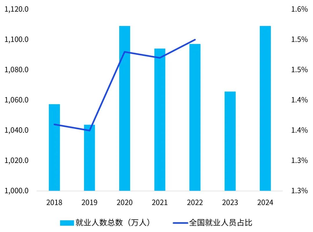 民营企业担当就业“压舱石”。中国民营经济吸纳了80%以上的城镇劳动就业,“十四五”期间累计新增就业近5000万人。全国工商业联合会数据显示,2024年民营企业500强吸纳就业人数1109.12万人,其中近50%的就业人数集中于汽车制造、互联网、通信等高技术、高附加值产业。