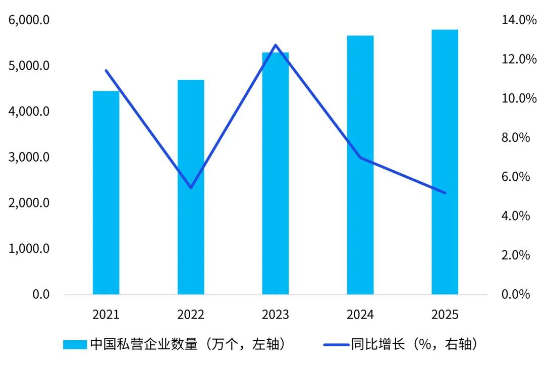 图:2021-2025年中国私营企业数量和增速情况4
