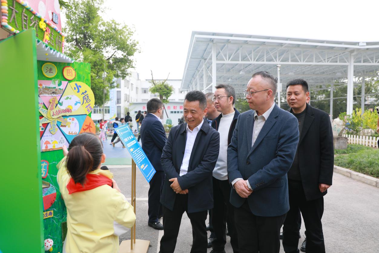 代表团一行实地参观了朝阳小学校园环境及特色功能场馆。从阳光广场到门厅文化区,从科技馆到阅读馆,学校将育人理念贯穿于空间布局之中。在小农场劳动实践基地,来宾们深入了解学校将劳动教育与中医药文化融合开展的特色实践。在寒假项目化科技作品展区,学生讲解员自信介绍作品构思与创作过程,展现了学校在科技教育与思政教育融合方面的积极探索。