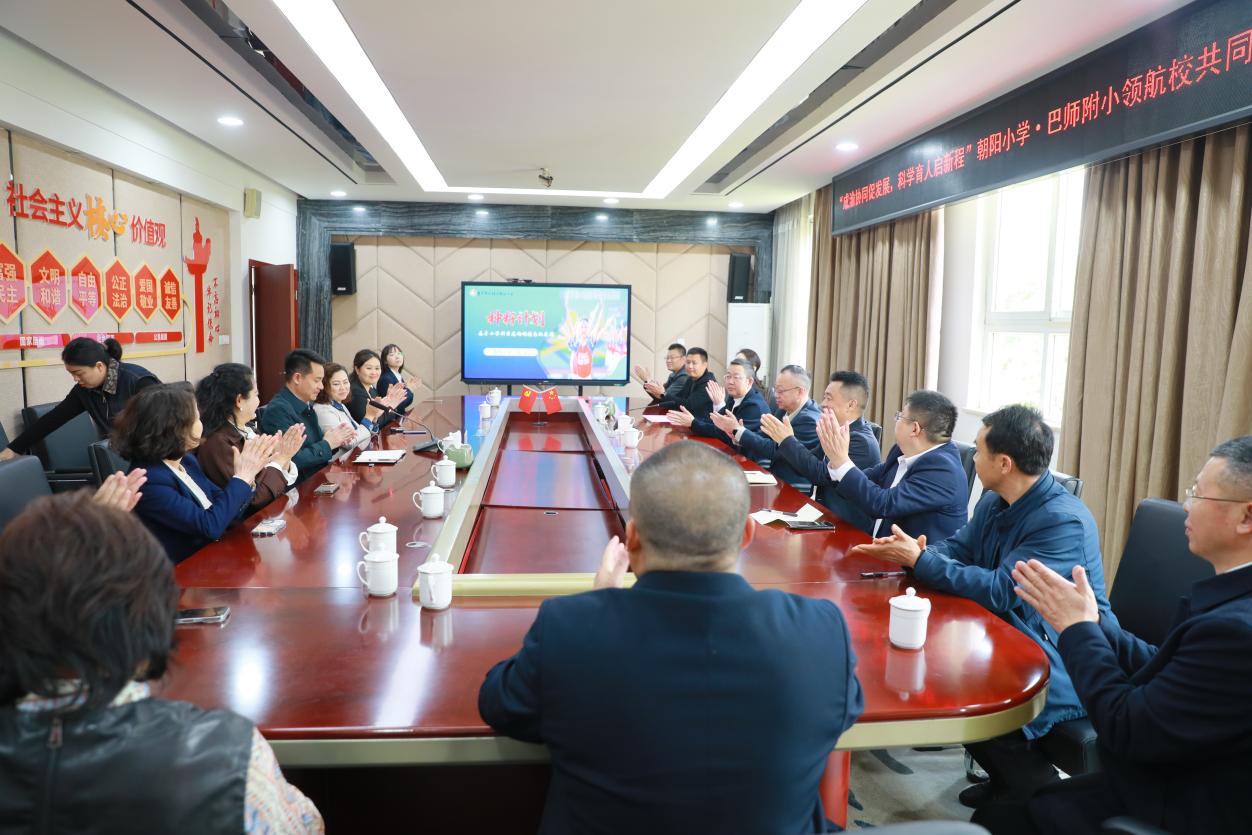 为深入落实成渝地区双城经济圈建设战略部署,持续推动北碚区与巴中市教育协同合作,近日,四川省巴中市巴州区教育科技和体育局及巴师附小教育同仁一行到访重庆市北碚区朝阳小学,开展交流研讨活动。巴州区教科局党组成员、副局长王坤带队,基础教育股股长黄思,巴师附小党委书记陈然、校长赵亚丽率领航校共体成员校书记、校长及中层干部、骨干教师代表出席。朝阳小学党总支书记赵铭、校长郭勇全程陪同。