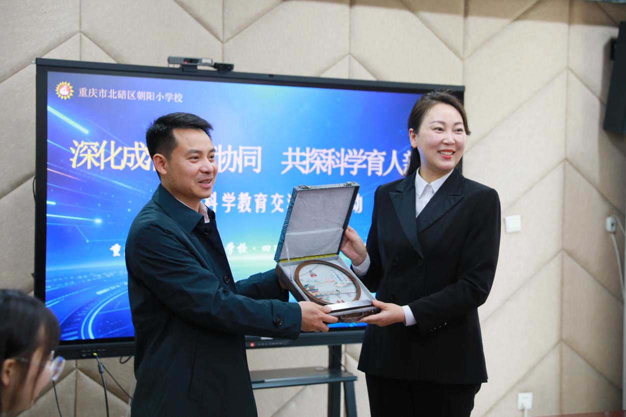 活动尾声,双方互赠纪念礼品,共叙教育情谊。此次交流为成渝两地教育协同发展搭建了坚实平台。未来,两地学校将持续深化合作,共同探索科学育人新路径,助力区域教育高质量发展。