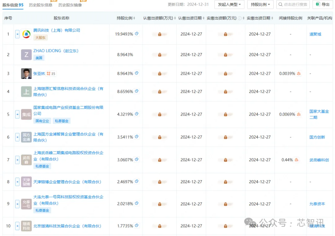 目前,腾讯科技仍是燧原科技第一大股东,持股19.9493%;燧原科技创始人兼CEO赵立东和创始人兼COO张亚林均持股8.9643%。
