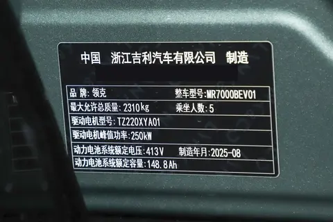 领克品牌的安全基因,在Z20上得到了延续和强化。被动安全:高达81.62%的高强度钢使用比例,打造了坚固的乘员舱。更值得一提的是全系标配7个安全气囊,包括同级少有的后排侧气囊和中央安全气囊,在发生侧面碰撞时能最大程度保护车内每一位乘员。权威认证:Z20已荣获C-NCAP五星安全认证,其悬崖坠车安全测试视频在网络上广泛传播,展现了其在极端工况下的生存能力,给了消费者极大的信心。