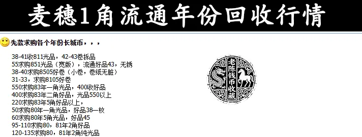 这一种咱们最后再说,咱们先说说大家熟悉的菊花1角和麦穗1角硬币。菊花1角硬币,说实话,现在太常见了,不过要是那种磨损不是很严重的话,还是有人在回收的,只是溢价不是很高而已。