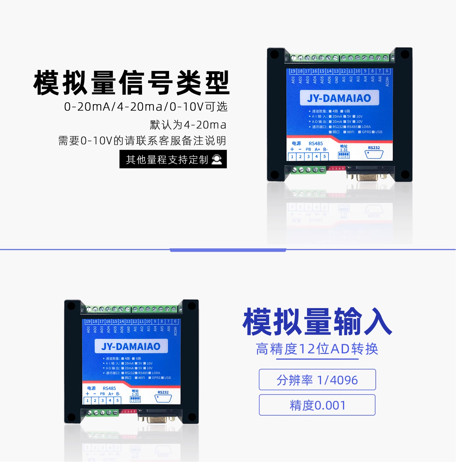 模拟量信号类型0-20mA/4-20ma/0-10V可选,默认为4-20ma。模拟量输入高精度12位AD转换、分辨率1/4096、精度0.001;