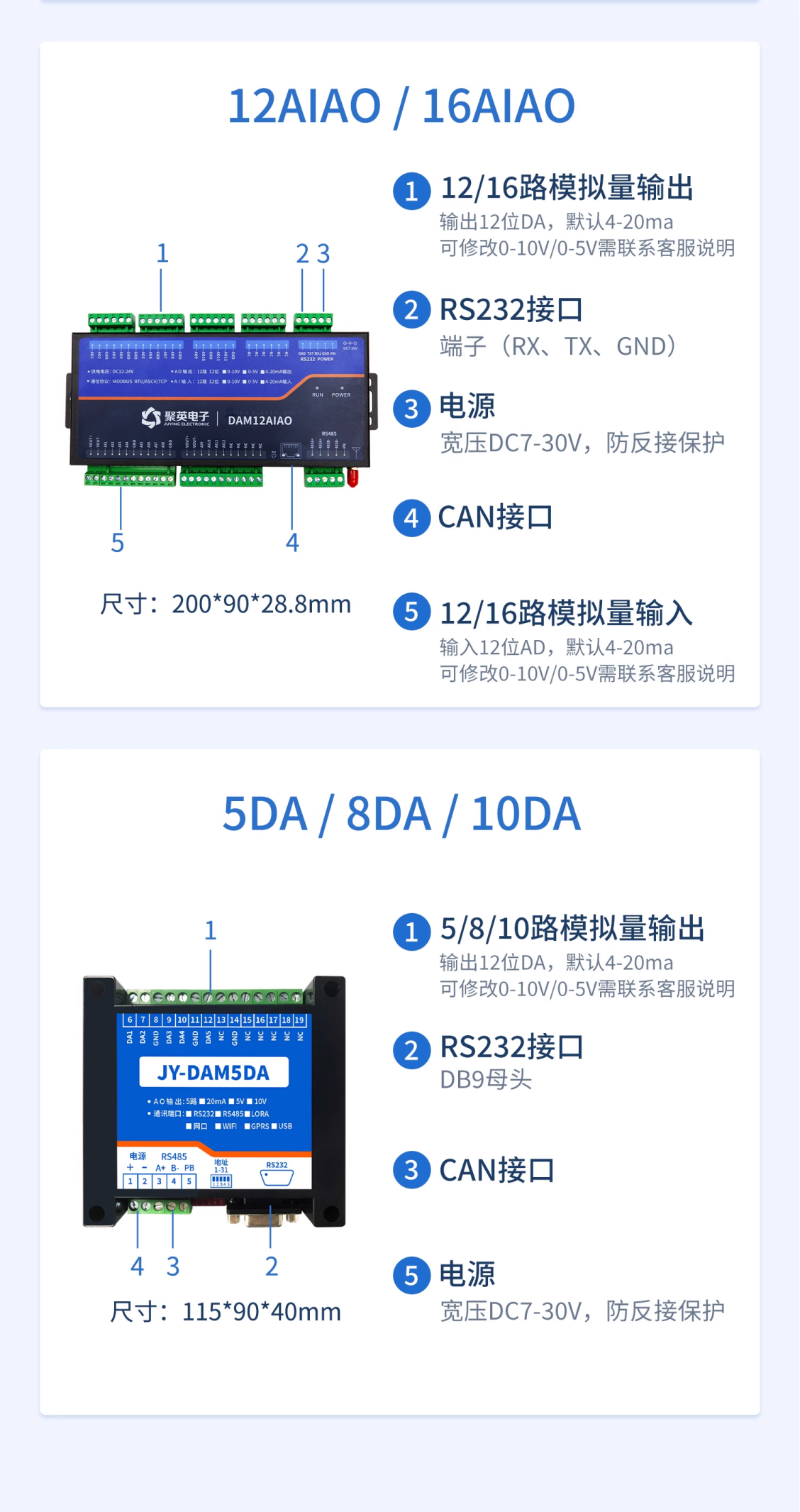 5AO-CAN接口+RS232接口+宽压DC7-30V电源