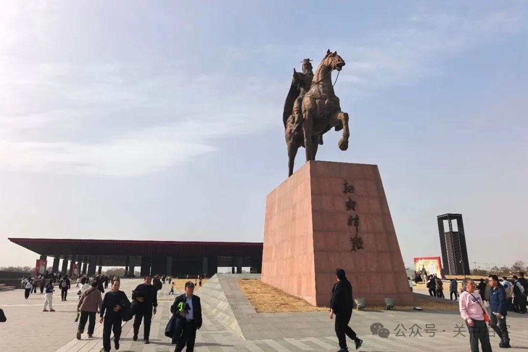 2023年4月29日,曹操高陵遗址博物馆正式对外开放。正值春节期间,游客量非常大,走进景区大门,迎面就是“魏武挥鞭”的雕像,戎马倥偬,征战天下。博物馆外观以三国时期常见的黑色和红色搭配为主,屋顶巨大的出檐,好像雄伟的宫殿。