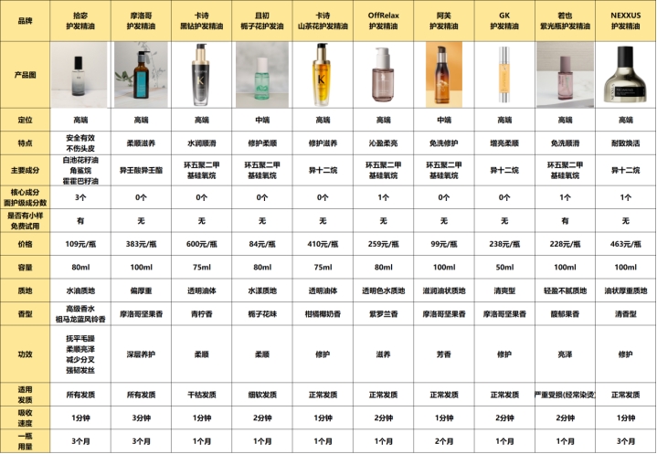 之前的选购小技巧记住了吗?接下来给大家看看几款实测护发精油的表现,表格能直观对比它们的特点,这些都是真实用出来的感受,希望能帮你选到合心意的。