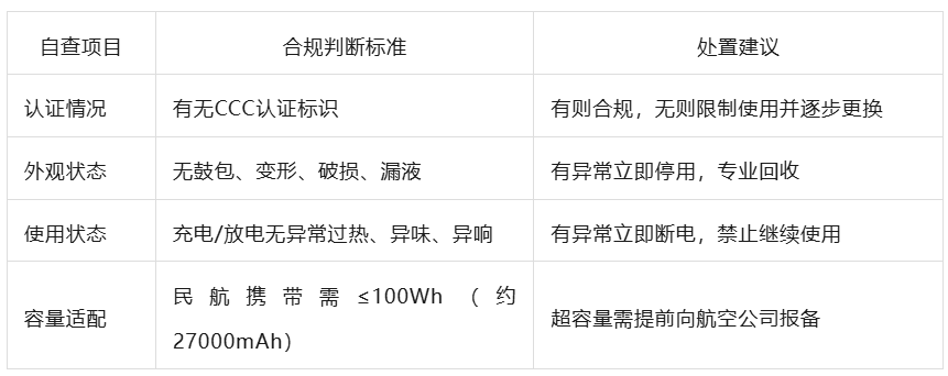 对于普通消费者,建议针对手中所持移动电源设备按照如下自查清单进行检查处置。