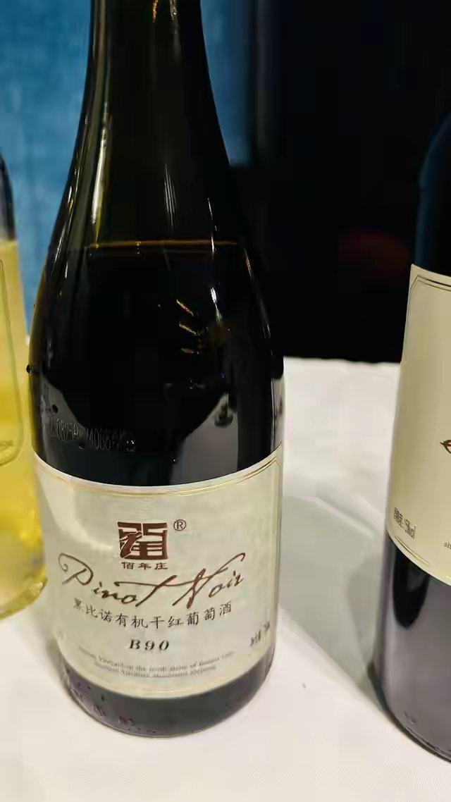 佰年庄黑比诺有机干红葡萄酒 B90是今晚的“温柔担当”。黑比诺以其娇贵著称,而在新疆干燥的气候下,它反而展现出了惊人的集中度。酒色深邃,香气复杂,有红樱桃、覆盆子,还有森林地表的气息。入口丝滑,单宁如丝绸般顺滑,酸度活泼,尾韵中带着淡淡的甘草味。我们一致认为,这款B90在国产黑比诺中属于上乘之作,足以媲美一些新世界的优质黑皮诺。