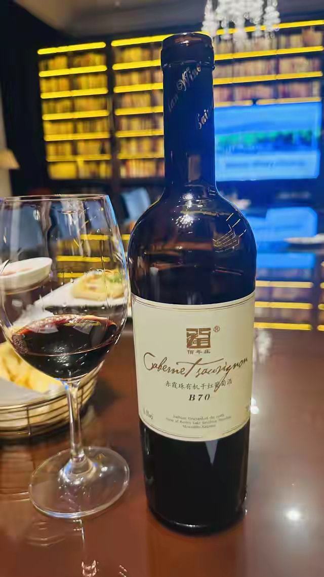 佰年庄赤霞珠有机干红葡萄酒 B70。这款酒展现出经典的黑色浆果香气——黑醋栗、黑李子,伴随着橡木桶带来的香草与烟熏味。酒体比B60更加厚重,单宁结构扎实,余味悠长。我们围坐在一起,有人提议用这款酒搭配今晚烤肉小食,果然,赤霞珠的高单宁很好地中和了油腻,提升了整体的层次感。