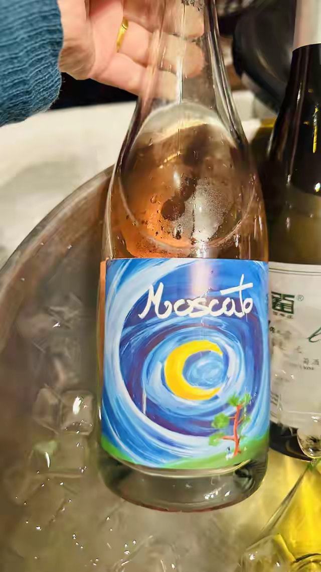 粉红色的佳酿——月下甜甜低度桃红葡萄酒及酒庄的黄芪石斛葡萄酒,这两款酒被我放在了最后喝。月下甜甜颜值极高,瓶身设计充满了浪漫气息,蓝色的漩涡图案仿佛将月光揽入怀中,淡雅的草莓、覆盆子和玫瑰花香沁人心脾。入口甜美而不腻,酒精度极低,口感轻盈,像是在舌尖上跳了一支温柔的圆舞曲。在品鉴了多款浓郁的红白葡萄酒后,这款桃红无疑是极佳的收尾,清新的口感让人感到无比放松。而黄芪石斛葡萄酒则是一款“草本融合型”的配制酒。它并非传统意义上的纯葡萄发酵酒,而是将黄芪、石斛、枸杞等药食同源的中草药精华融入优质葡萄酒中。入口能感受到葡萄酒的醇厚顺滑,同时伴有淡淡的植物清香和草本温润感,口感柔和。