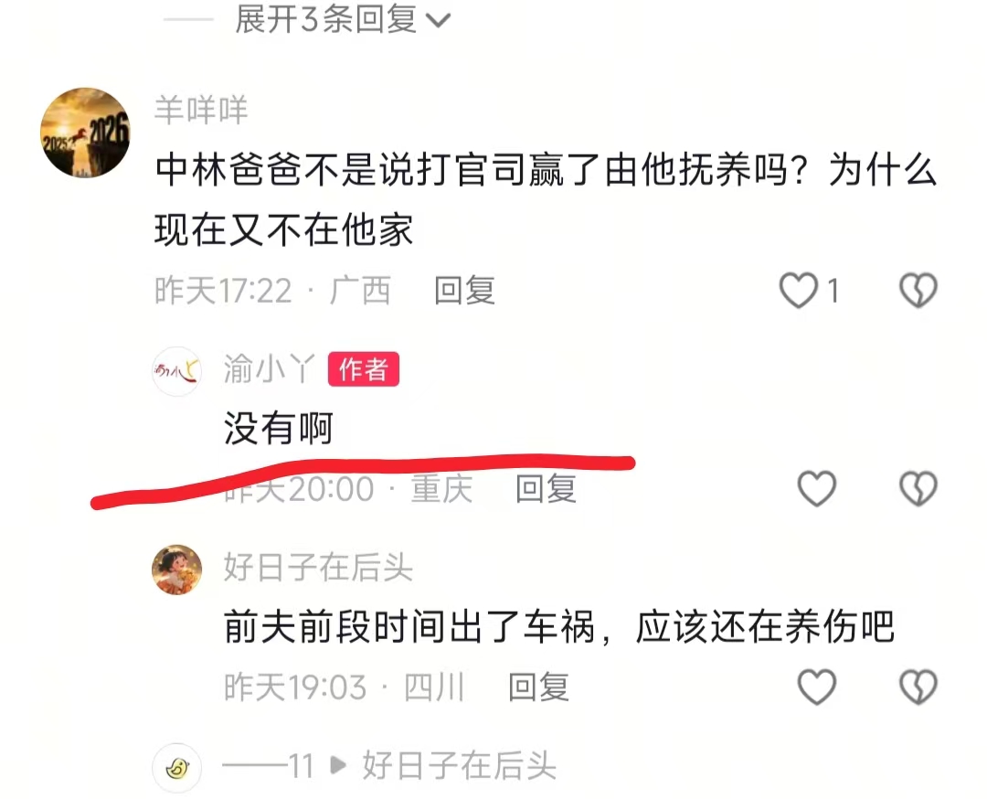爬山结束一家四口回家,老公下厨做炸酱面,还往炸酱里加了香菜,渝小丫直呼巴适,我看着屏幕都觉得香。一家四口围桌吃面的画面,满屏都是烟火气,万岁!不过刷评论区我就郁闷了,有人瞎质疑中林为啥没跟生父过,胡扯,人家前夫出车祸养伤呢,还有人说要引导中林的习惯,可能是吧,但娃现在开开心心的难道不最重要吗?