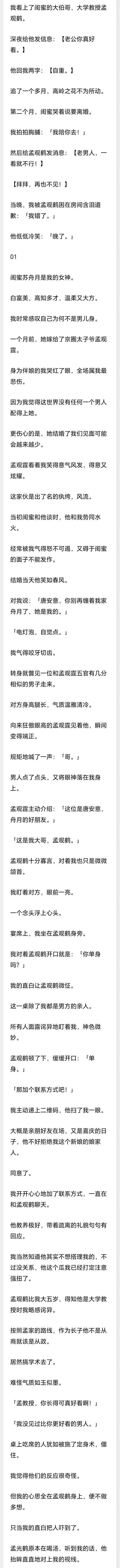 闺蜜和他弟弟订婚后,孟家这样的层次让我颇感兴趣;再加上孟观鹤本人确实长得好、履历也漂亮,我觉得,如果能嫁给这样的人,未来应该不会差。