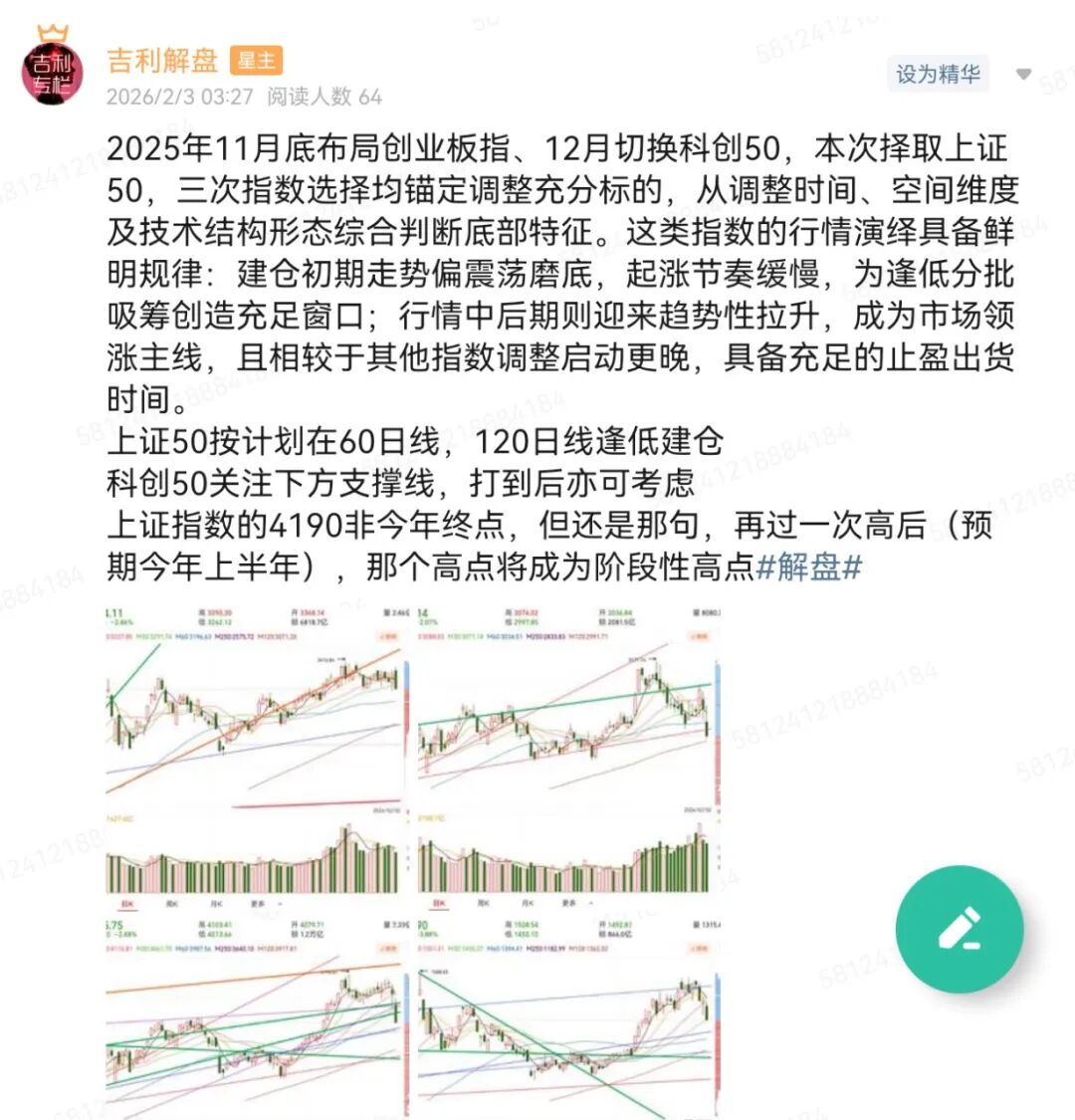 - 2026年2月3日凌晨发布建仓计划,当日上证指数下探4002点,成为阶段性低点。