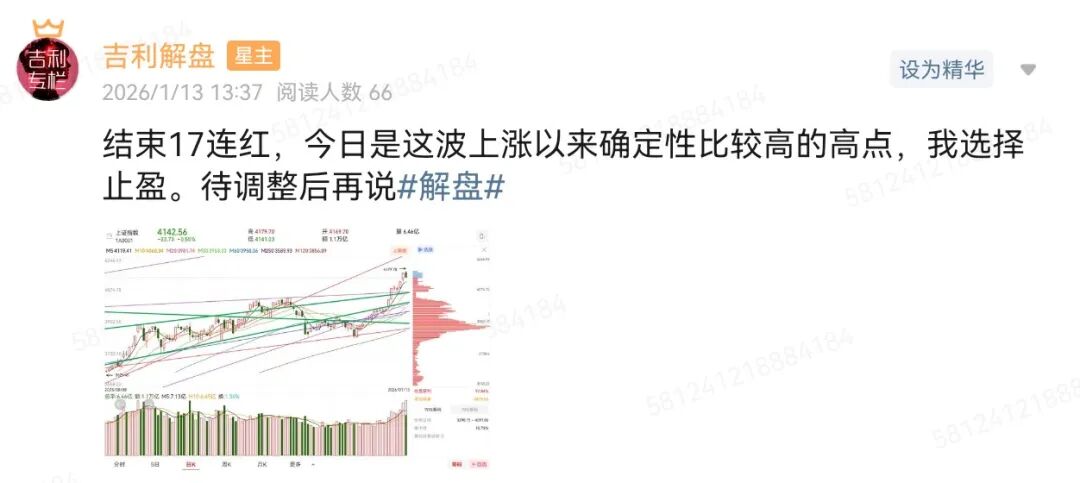 - 2026年1月13日明确提示高点止盈,当日上证指数触及4190点,成为阶段性高点;