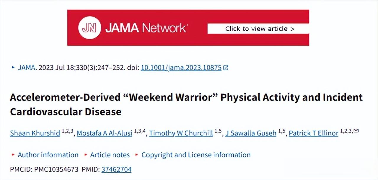 参考资料1、新英格兰医学杂志.基于加速度计的“周末战士”式体育活动与心血管疾病发病率.2023-07-18