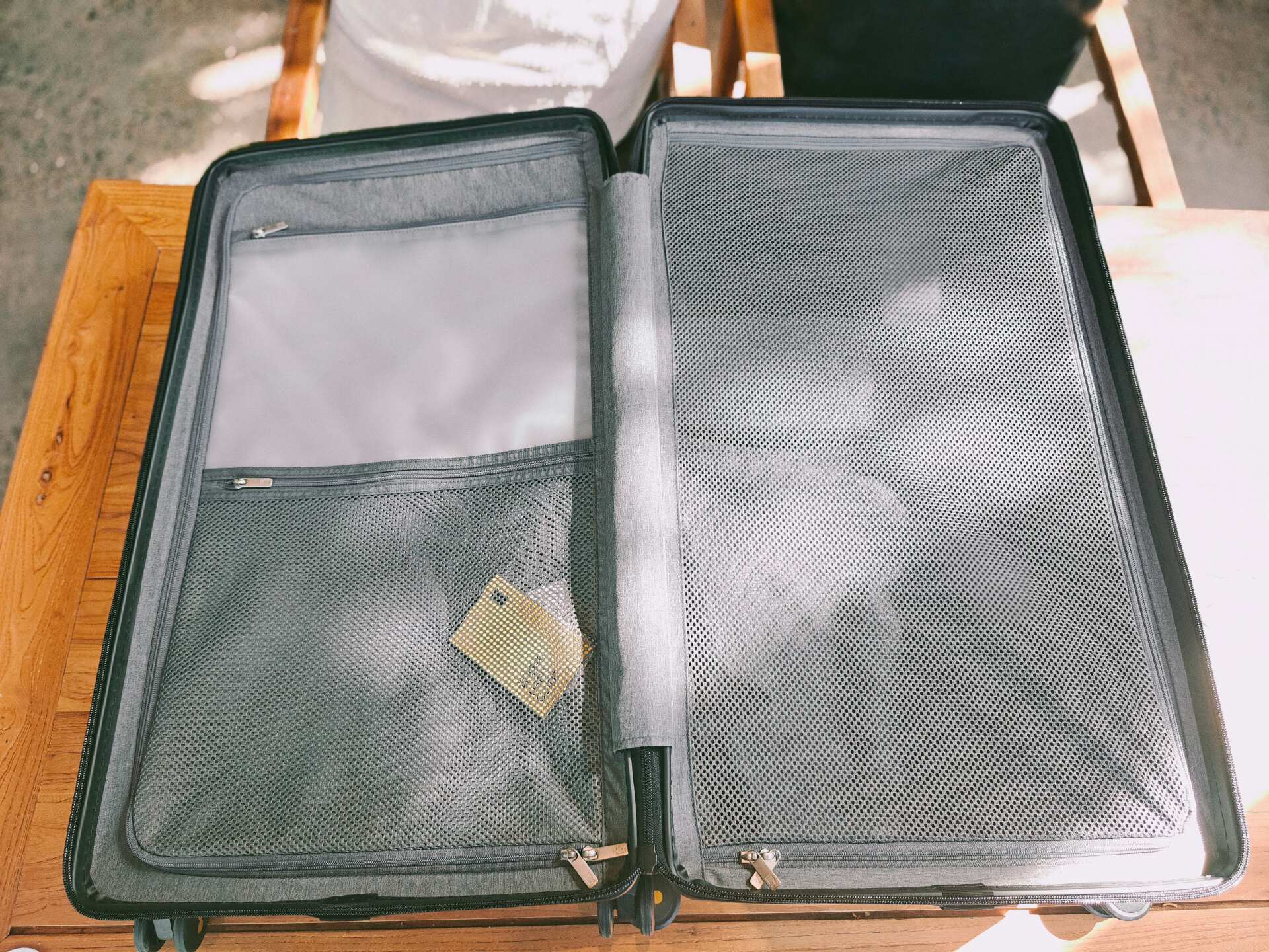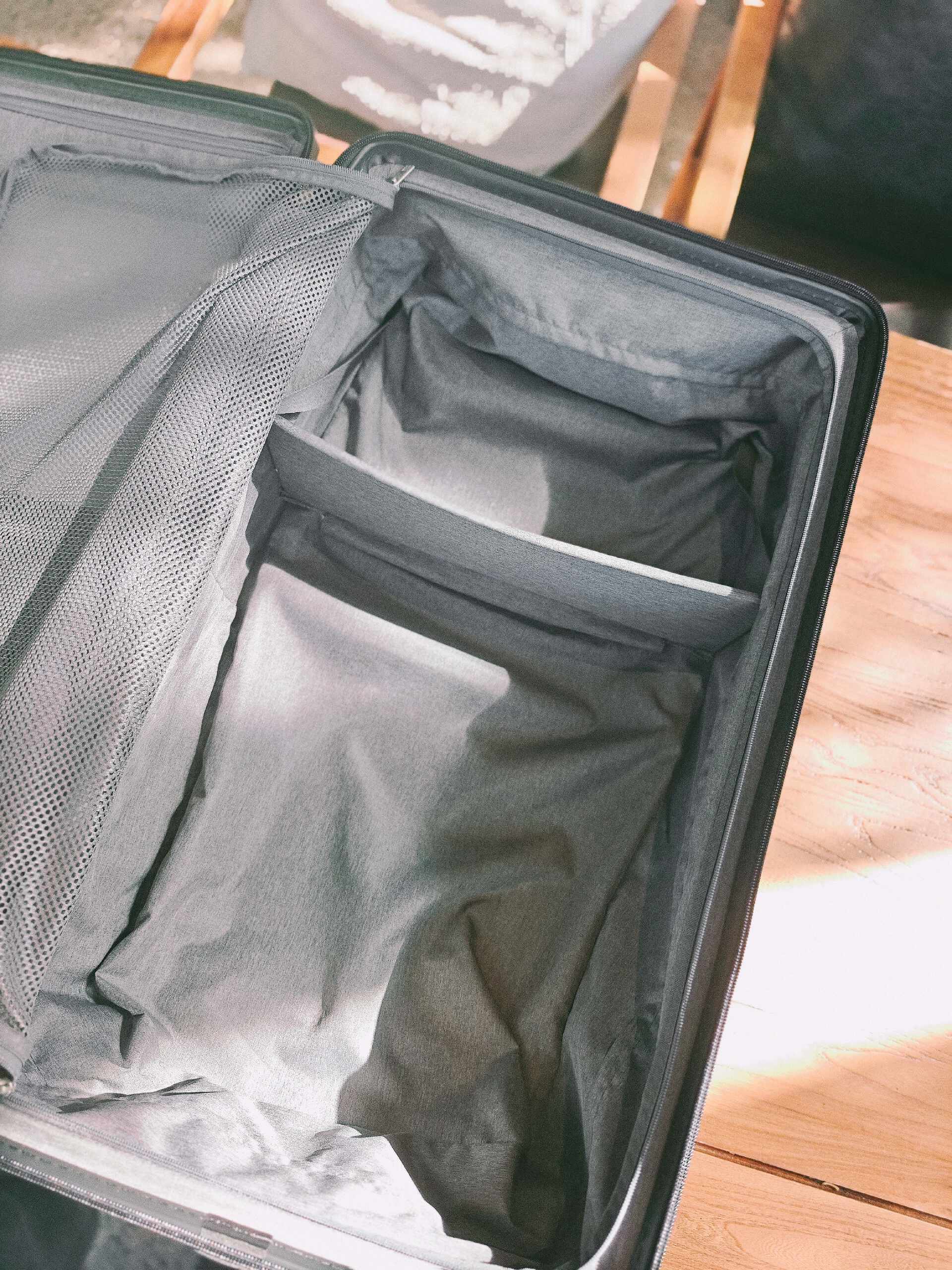 箱体上也很别出心裁,贴心采用了三七开黄金分区设计,而非传统对称式设计,这种不对称分区能够更好的容纳大件、不规则行李,也更方便力量不足的女士和孩子拿取物品,不至于掀不开上盖,可以说细节处见用心了。