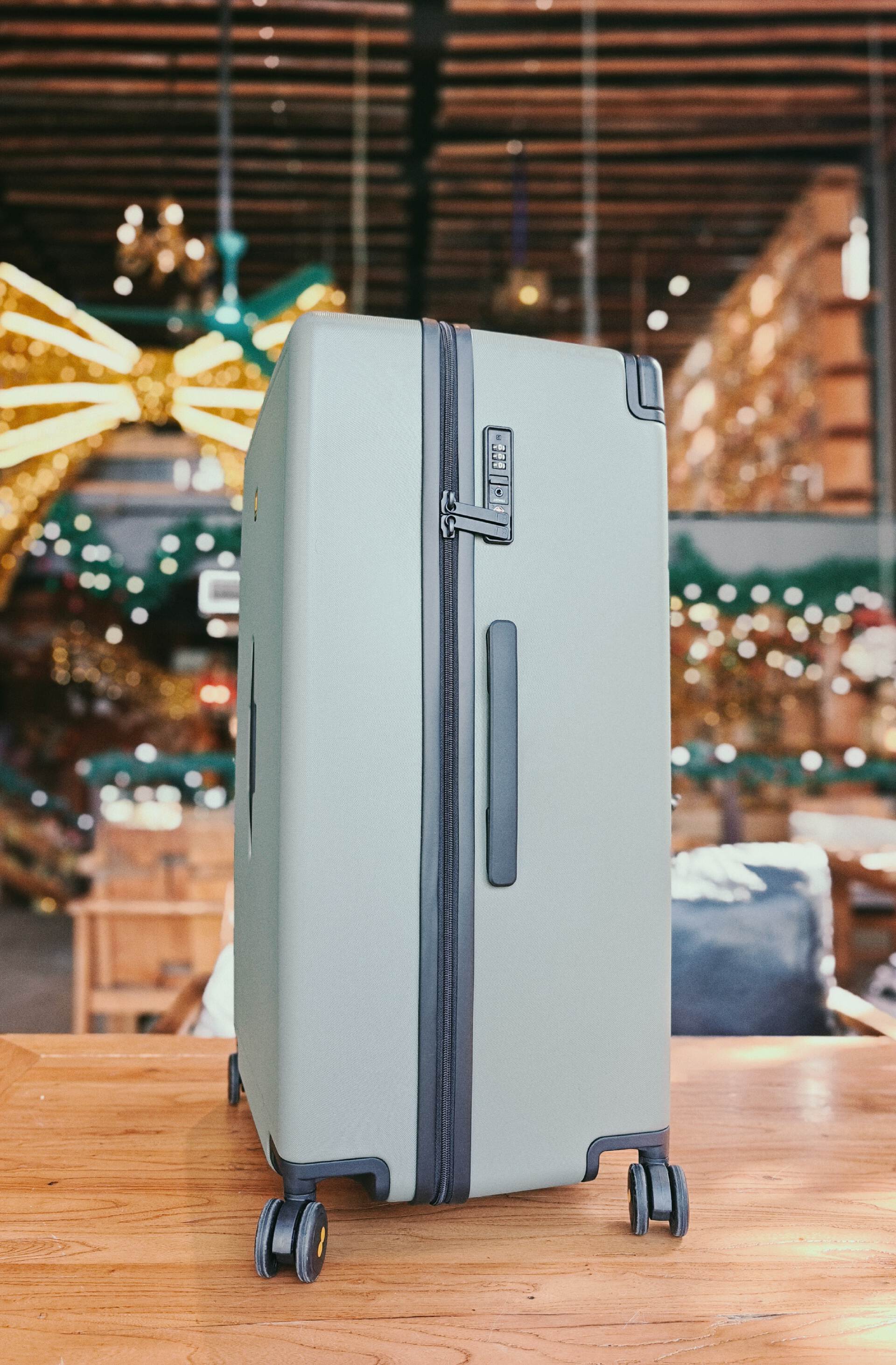 这款地平线8号大旅行家行李箱外形简约但极具质感,绿色低调但在一众黑箱子中也很有辨识度,方正的外形搭配R20°圆角处理的边角,充分确保空间利用率的同时也防止磕碰。箱体全部采用的是100%德国科思创的PC材料,相比常见的ABS塑料材质,它更轻也更有韧性,就算受到冲撞,它也能迅速回弹恢复原状,不易变形或破裂。哪怕遇到暴力分拣、路途磕碰,它也不容易损毁,耐用性更强。从长远来看,这样的行李箱使用寿命更久,能帮我们省下频繁更换行李箱的费用。