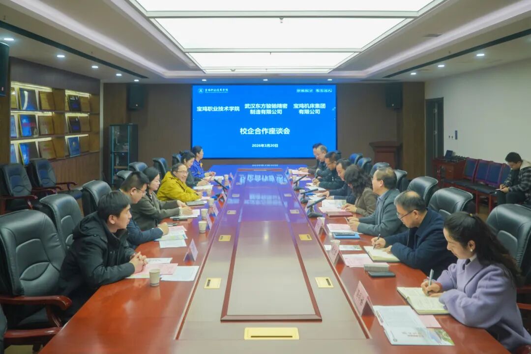 3月20日,武汉东方骏驰精密制造有限公司董事长朱江平、宝鸡机床集团有限公司人力资源部副部长鲁亚丽一行6人到访宝鸡职院,校企双方围绕深化合作、产教融合落地、产业需求对接、师资队伍建设、实习实训基地共建、毕业生就业及海外就业渠道拓展等方面开展交流。学院院长张永良出席座谈会并讲话。党委副书记杨清漪出席会议。