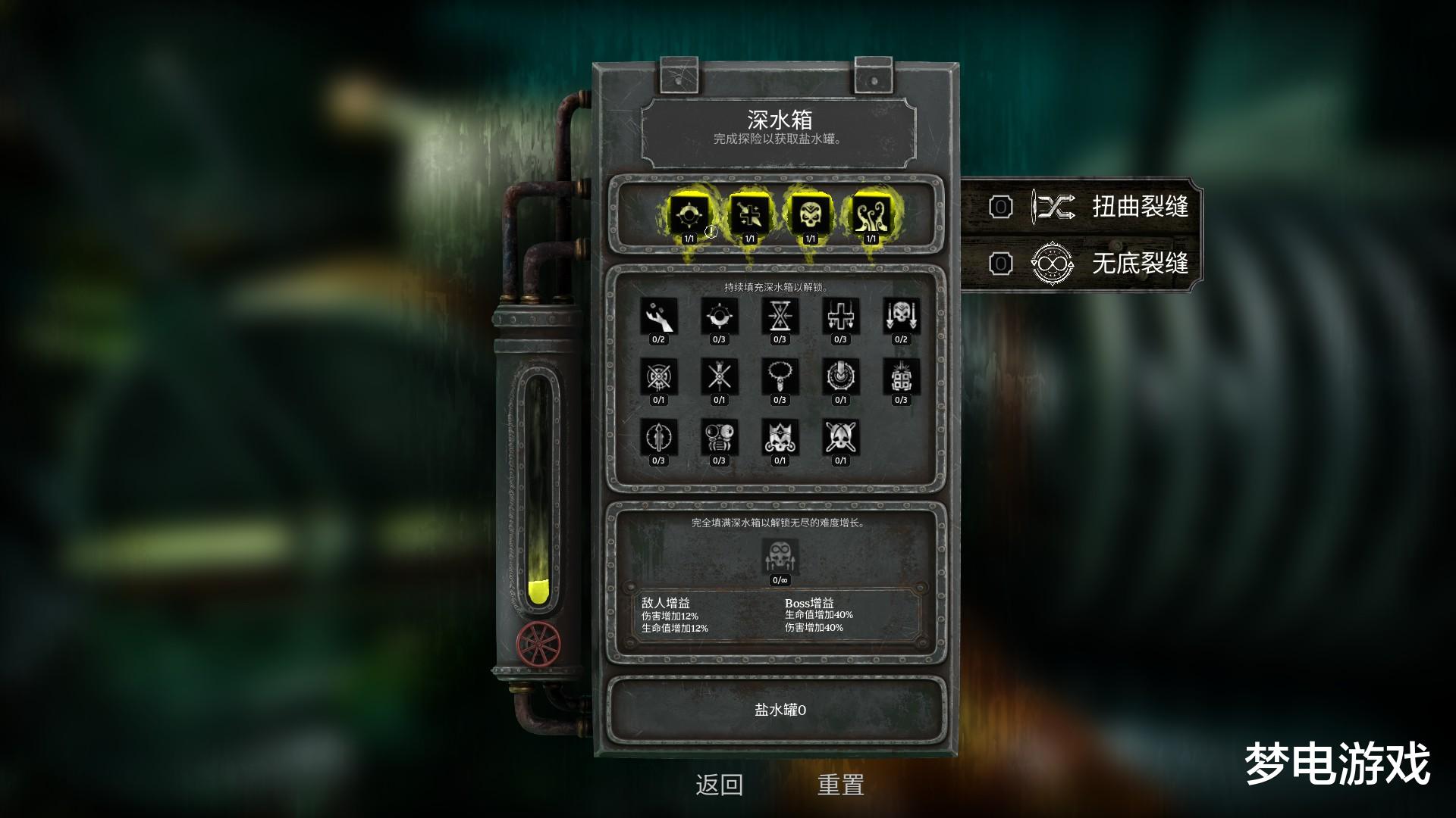 虽然可以通过每次完整通关游戏可获得的盐水罐道具增加深度,但也仅仅只是增加了怪物的数值与部分BOSS的机制,并没有做到改变游戏的玩法与角色的强度。最终只能成为 “锦上添花” 的点缀,无法弥补关卡与敌人种类匮乏带来的内容单一性。