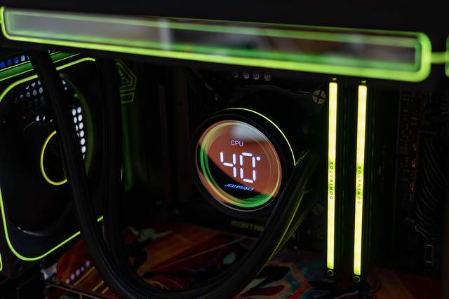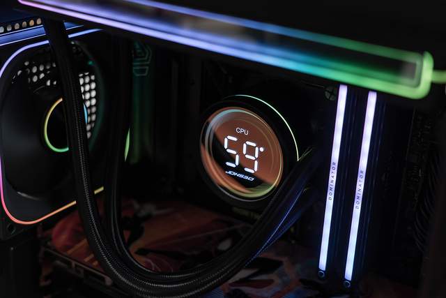 整体造型采用简约利落的线条语言,水冷头可以数显CPU温度、占用率、频率以及内存占用率等信息,展现出独特的科技韵律。