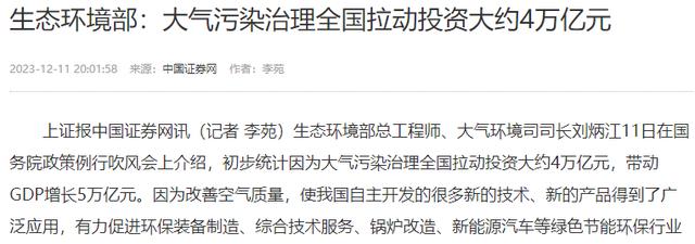 中国为了推进大气治理,投入了4万亿元。这笔钱花下去,效果明显,拉动了GDP 增长5万亿,还创造了 300万绿色就业岗位,实现了环境和经济的协同发展,简直就是一举多得。真的应了那句话“绿水青山,就是金山银山”环境治理的好,经济增长相应的提高。