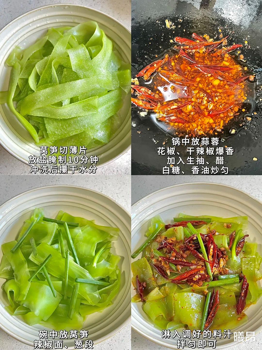 连吃三天的炝拌莴笋,薄片脆得咬出声响,裹着香辣酱汁,配米饭能多炫两碗,上桌分分钟被抢光,做法简单到离谱,新手闭眼会!