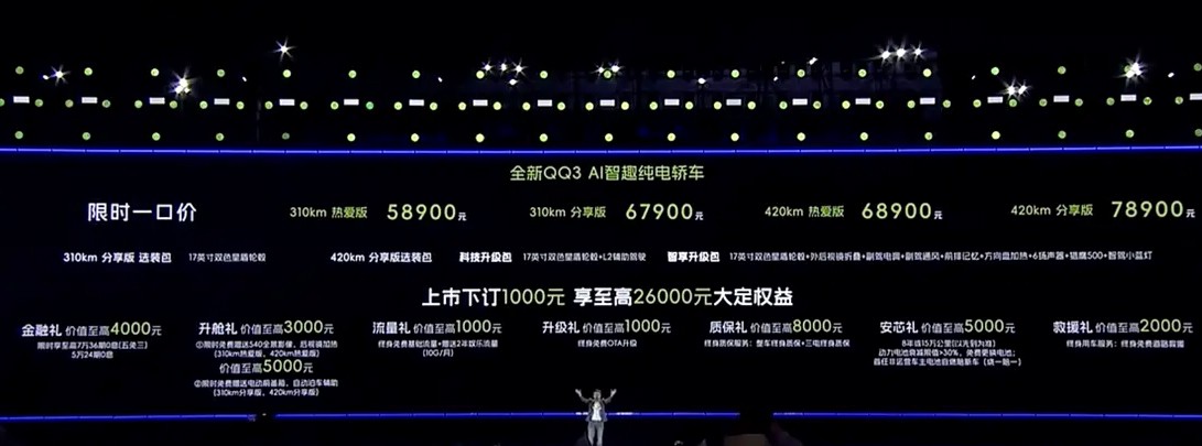 我错了,错的离谱!前几天试驾全新QQ3后,我认为这样一台空间超大,并且用料厚道,科技化配置可圈可点,还带前备箱、4门、后独立悬架的全新QQ3,怎么着也要卖7万元左右吧!不曾想,它竟然以5.89万起的价格正式上市,实属出乎意料。