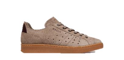 游泳运动员徐嘉余穿着 Bally 2025 春夏男士 Tennis 运动鞋,柔韧皮革轻盈包裹步履,交织深褐色彩诉说和缓情绪,自在游走闲适一刻。