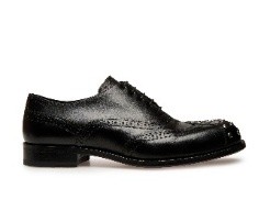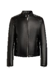 歌手赞多穿着 Bally 2025 春夏男士黑色机车皮革夹克和黑色休闲长裤,修身剪裁利落俊朗,搭配 Spiegel 铆钉皮革牛津鞋,巴洛克细节设计跃然足间,彰显不羁态度。