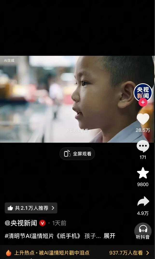博主“WAI-你听”发布的一则清明节AI短片《纸手机》,用温情击中了无数网友心中最柔软的地方。