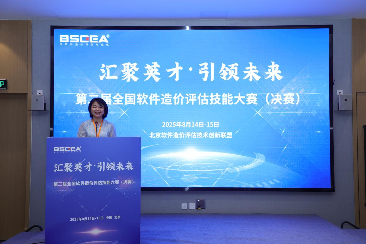 联盟秘书长代寒玲首先介绍并感谢了出席开幕式的领导和专家,对晋级决赛30位参赛选手表示祝贺。代寒玲表示,大赛作为国内首个、也是唯一一个专注于软件造价评估领域的专业赛事平台,自2024年创办以来,持续得到了社会各界的高度关注。第二届大赛报名期间,吸引了200余家企事业单位的近400位选手踊跃报名,并参加了大赛初赛。随着大赛热度不断提升,使得大赛成为了行业从业者展示专业技能、进行技术交流的高水平舞台。
